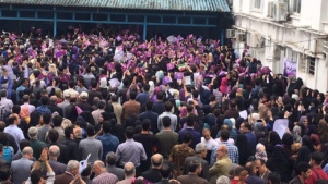 10:28 تراکم جمعیت به حدی است که دمای داخل سالن زیاد شده تعدادی از افراد دچار گرفتگی نفس شده و به بیرون انتقال داده شدند
