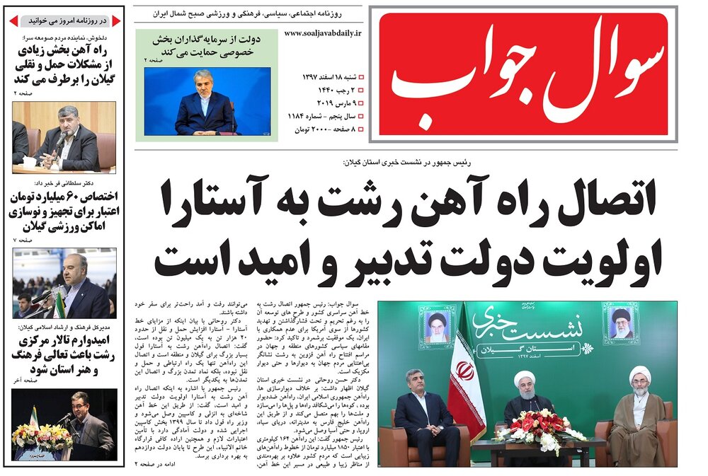 صفحه اول روزنامه های گیلان 18 اسفند 97