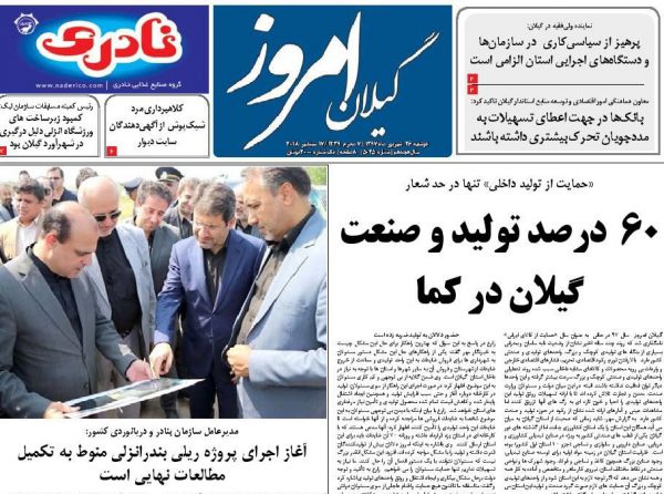 صفحه اول روزنامه های گیلان 26 شهریور