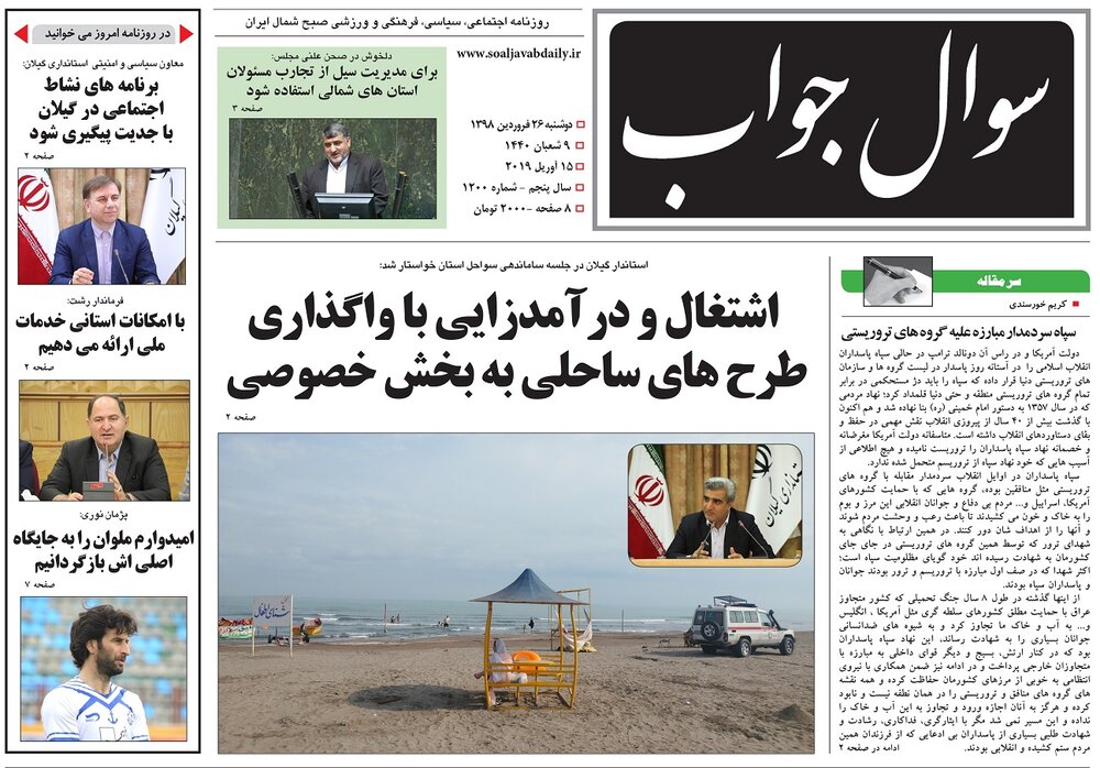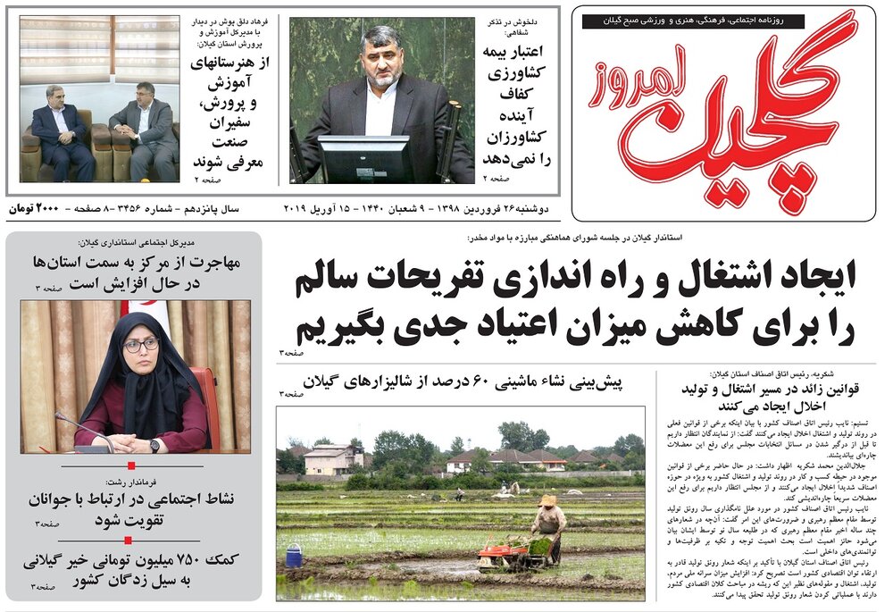 صفحه اول روزنامه های گیلان 26 فروردین 98