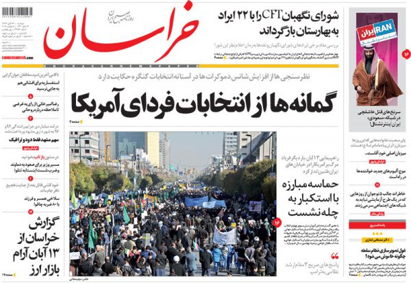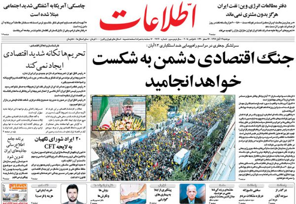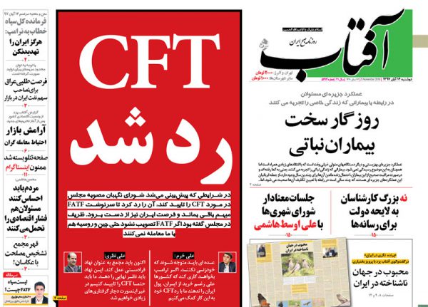 صفحه اول روزنامه ها دوشنبه ۱۴ آبان