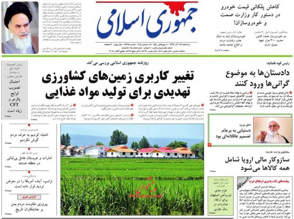 صفحه اول روزنامه ها سهشنبه ۲۷ آذر
