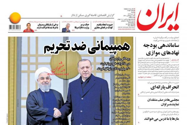 صفحه اول روزنامه ها شنبه ۱ دی