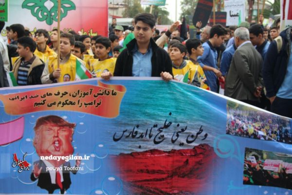 به گزارش ندای گیلان،مردم رشت امروز همراه دانش آموزان و دانشجویان به خیابان ها آمدند تا پاسخ روشنی به یاوه گویی های مقامات امریکا داده و وحدت و یکپارچگی خود را در مسیر مبارزه با استکبار جهانی به نمایش بگذارند.